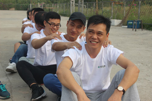 大家分成兩組坐在地上,為自己前方的人捏肩捶背,然后轉身向后輪換。游戲迅速消除了員工們的陌生感,營造了很好的拓展氛圍,奠定了團隊建設的基礎。