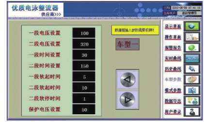雙系統(tǒng)控制器提供整流變壓器保護、12 脈波整流橋相控觸發(fā)、人機操作、網(wǎng)絡(luò)通訊。同時溫度檢測元件監(jiān)控著變壓器、電抗器、晶閘管等功率器件,超過溫度設(shè)定值,設(shè)備報警動作,同時將故障上傳 PLC 并在觸摸屏上顯示。